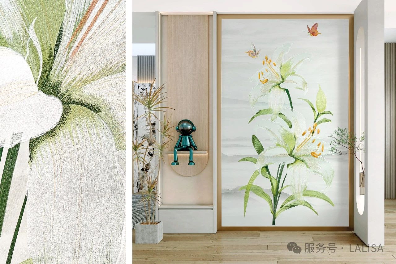 在追求個(gè)性化的時(shí)代,墻面裝飾的設(shè)計(jì)風(fēng)格也需要與時(shí)俱進(jìn),滿足不同消費(fèi)者的審美需求。萊麗莎擁有全球 20 多個(gè)國(guó)家的 30 多個(gè)知名設(shè)計(jì)師團(tuán)隊(duì)組成的設(shè)計(jì)機(jī)構(gòu),每年為其提供 300 多款原創(chuàng)設(shè)計(jì)花型。無(wú)論是當(dāng)下流行的自然極簡(jiǎn)主義、新中式復(fù)古,還是經(jīng)典的歐式風(fēng)格、美式風(fēng)格、輕奢風(fēng)格、法式等風(fēng)格,萊麗莎壁布都能完美呈現(xiàn)。繁花似錦的圖案,仿佛將春天的花園引入家中;古典雅致的設(shè)計(jì),彰顯出優(yōu)雅氣質(zhì);現(xiàn)代簡(jiǎn)約的刺繡風(fēng)格,展現(xiàn)出簡(jiǎn)潔而不失精致的生活態(tài)度。每一種色彩都經(jīng)過(guò)精心調(diào)配,不僅與家居風(fēng)格完美融合,還能在不同光線下展現(xiàn)迷人變化。萊麗莎壁布用精湛的刺繡工藝,為家居裝飾增添藝術(shù)魅力,讓家成為一座私人藝術(shù)殿堂。